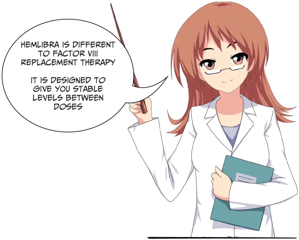 Hemlibra levels remain stable between doses. This means that you do not need to take additional doses of Hemlibra or factor VIII replacement therapy to cover activities such as playing sport.