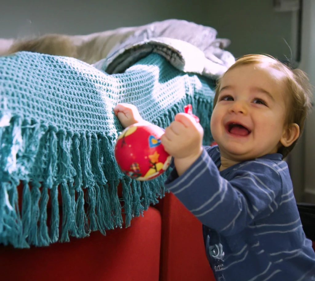 “He’s starting to pull up and stand up now. And of course, that comes with toppling over, and it’s made me feel so reassured that I don’t need to be really worried about all those things I would want him to have as part of normal, being a baby and playing with his brother and his cousins. We feel very grateful for that.”