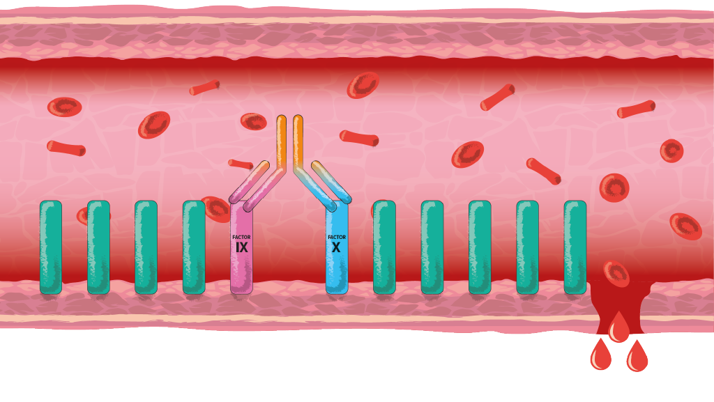 - Hemlibra binds to factor IXa and factor X. This forms a link so the clotting pathway can continue